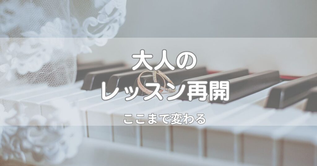 「大人になってから、もう一度ピアノをやってみたい」そう思っても、 ・続けられるか不安・人前で弾くなんて無理・子育てや仕事と両立できるのか そんな気持ちで、一歩踏み出せない方も多いと思います。 大人になってから再開された生徒さん 実際に通われ...